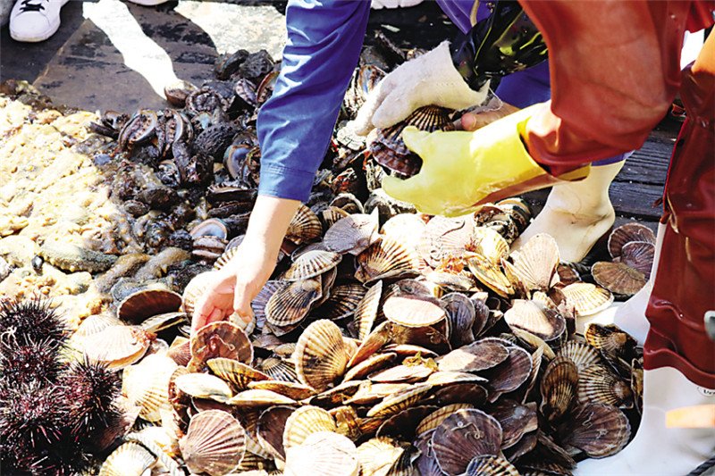 2021年长海县海水增养殖继续趋好,主要养殖品种均取得了较好的收成,渔民丰产增收。上半年,全县渔业产值35亿元,同比增长11%。其中:海洋捕捞产值4.2亿元,同比上升6.7%;海水增养殖产值25.7亿元,同比增长7.9%;苗种产值5.05亿元,同比增长35.3%。水产品产量预计25.6万吨,同比增长10.1%。渔业兴县战略正让长海县成为辽宁省确定的海洋牧场示范县,蓝色梦想照亮了海岛。