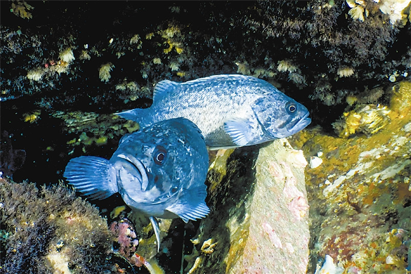 “大门顶礁石水下10米左右有个洞,南北贯穿整个礁石,以前从来没有人发现过。我们潜水发现后进去拍摄,里面很黑,有黑鱼、皮匠鱼在里面藏着。水下鱼群就在我们身边,二三十斤的黄条鰤和我们最近也就两三米远。那里水流太急了,目前很少有海参鲍鱼。”吴立新介绍。