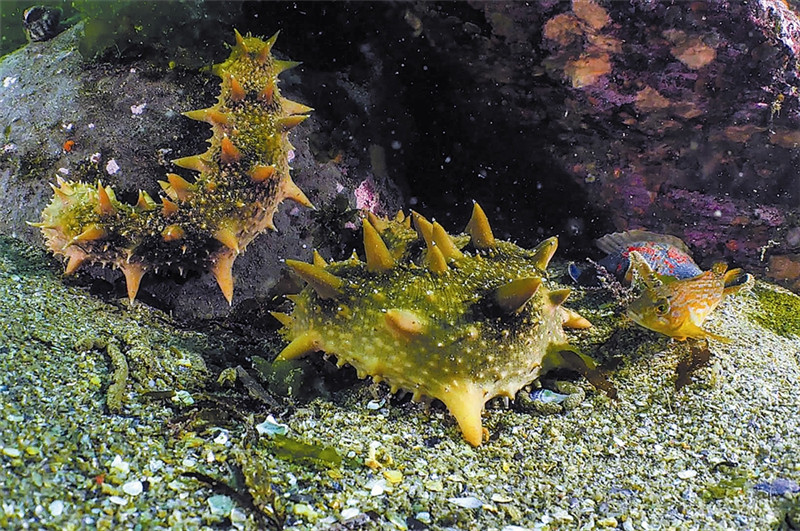 “最有意思的是黄鱼雄鱼护卵的过程,一条雄鱼‘占据一方’,和不同的雌鱼交配,雌鱼们会在雄鱼的‘领地’产卵,这条雄鱼‘镇守一方’,护卵时间会长达2月,直到这些‘同父异母’的卵孵化成小鱼。如果其他棘皮动物如海参要吃它的卵,雄鱼会把海参叼走。去年我们观测到七八条雄鱼护卵,还给这几条鱼起了名字。雄鱼护卵时身体会变成鲜艳的黄色,是名副其实的‘黄鱼’。这是捕捞上岸后所不可能呈现的?!蔽饬⑿氯挠行酥碌亟樯茏?。