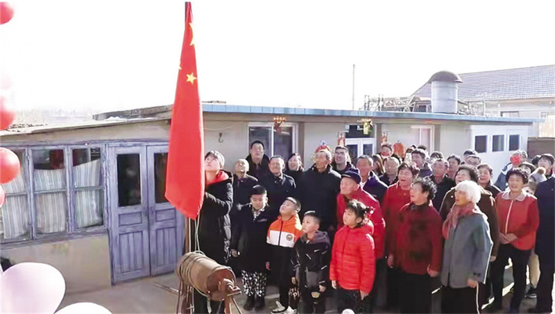 在李丰章的电子琴伴奏下,五星红旗在小院里冉冉升起,40多个人行注目礼,庄严而肃穆。